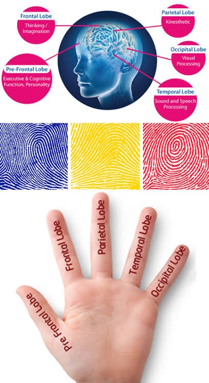 Fingerprints and brain development are both formed during the fetal stage (between the 13th and 21st week of gestation). Hence, the patterns on our fingers are closely linked with the neural structure of the brain’s lobes: